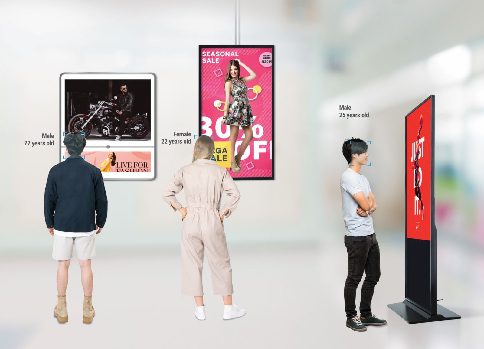 Cá nhân hóa nội dung quảng cáo: Màn hình quảng cáo AI có khả năng nhận diện khuôn mặt, thu thập thông tin khách hàng và trình phát nội dung phù hợp.